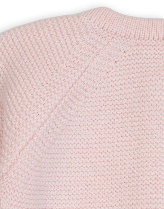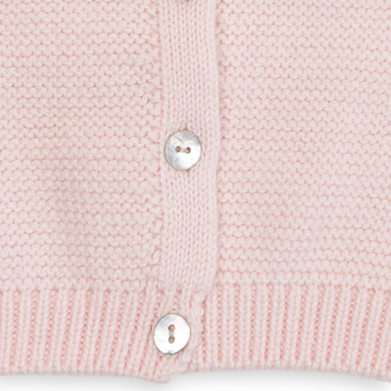 De fijne gebreide structuur en de praktische knoopsluiting maken het vestje makkelijk aan en uit te trekken. De raglanmouwen zorgen voor optimale bewegingsvrijheid